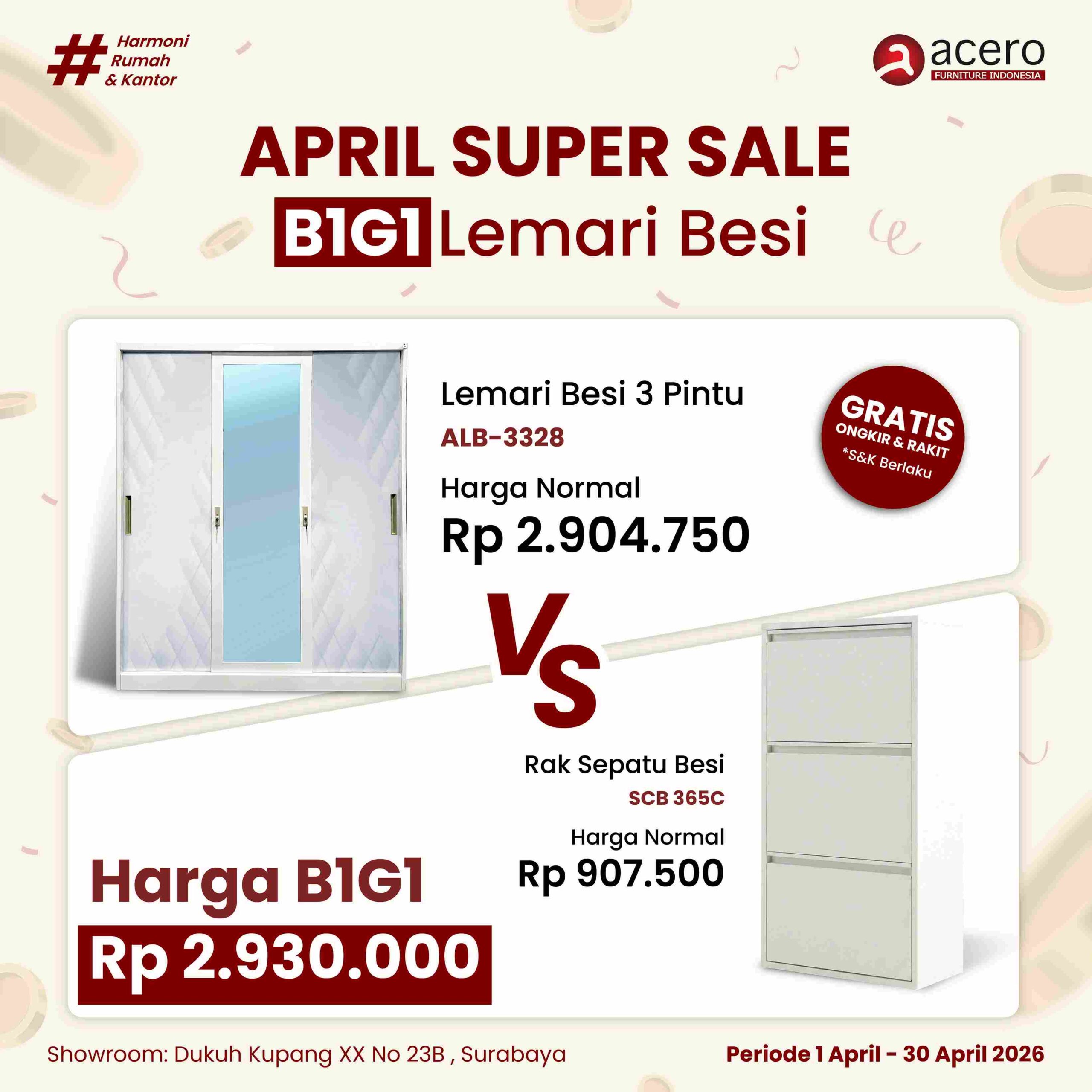 Ya, GRATIS ongkir dan GRATIS perakitan khusus area Surabaya, Sidoarjo, dan Gresik. Tim kami akan kirim dan langsung rakit di tempat sampai siap digunakan tanpa biaya tambahan.